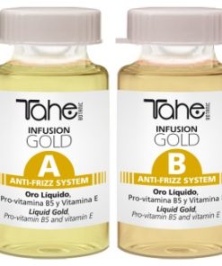 INFUSION GOLD ANTI-FRIZZ “B”. INGREDIENTES/INGREDIENTS: Aqua (Water), Glyoxylic Acid, Cyclomethicone, Cyclopentasiloxane, Dimethiconol, Argania Spinosa Kernel Oil, Limnanthes Alba Seed Oil, Panthenol, Pantolactone, Tocopheryl Acetate, Hydrolyzed Keratin, Phenyl Trimethicone, Octyldodecyl Myristate, Cetearyl Alcohol, Cyamopsis Tetragonoloba Gum, Glyceryl Cocoate, Hydrolyzed Soy Protein, Hydrolyzed Wheat Protein, AMP-Isostearoyl Gelatin/Keratin Amino Acids/Lysine Hydroxypropyltrimonium Chloride, Rosmarinus Officinalis Extract, Amyl Acetate, Phenoxyethanol, Benzoic Acid, Dehydroacetic Acid, Parfum (Fragrance