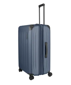 Trolley grande DYNAMIC di TRAVELITE, realizzato in ABS, robusto e resistente con superficie antigraffio, angoli rinforzati per una maggiore protezione. Doppio divisorio con fettuccia ferma abiti attaccata al fondo. Quattro ruote doppie e serratura a combinazione TSA incassata. Manico telescopico robusto e bloccabile. Manico sul fondo. Valigia espandibile.