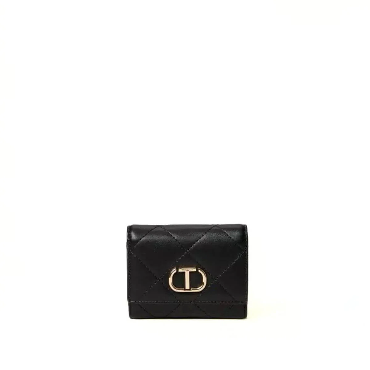 Portafoglio da donna di TWINSET in similpelle di vitello liscio nappato morbido con lavorazione quilted senza imbottitura. Chiusura con patta, logo Oval T in metallo, comparti interni con portacarte e portamonete.