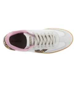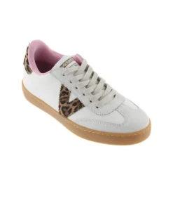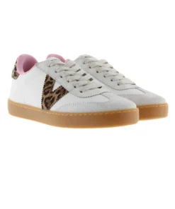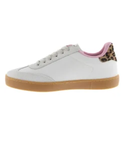 Sneakers, modello samba, da donna di VICTORIA. Tomaia realizzata in pelle bianca con V leopardata. Chiusura con lacci. Interno e sottopiede in tessuto e suola in gomma.