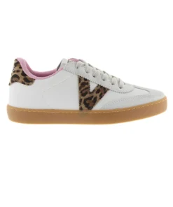 Sneakers, modello samba, da donna di VICTORIA. Tomaia realizzata in pelle bianca con V leopardata. Chiusura con lacci. Interno e sottopiede in tessuto e suola in gomma.