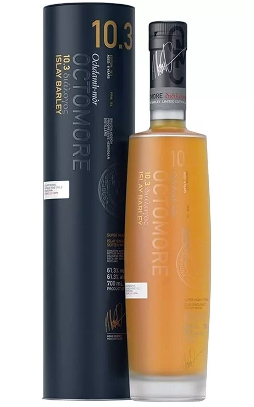 Vi proponiamo una serie di release di Octomore, il whisky prodotto a Bruichladdich, pesantemente torbato (167 ppm dichiarati, per darvi un’idea, Lagavulin e Ardbeg torbano tra i 50 e i 55 ppm) e invecchiato per 8 anni in botti di rovere ex-bourbon. Al naso, subito la torba è presente, ma non risulta pesantissima come si potrebbe pensare, ma anzi è piacevolmente integrata con note marine, fieno, salmone affumicato e inchiostro. Al palato,molto fumo ma anche liquirizia, una bella nota di pepe nero e note di agrumi, limone e un po’ di arancia. Il finale è lungo, rimane una piacevole sensazione di fumo, insieme a molta liquirizia e agrumi.
