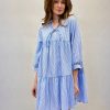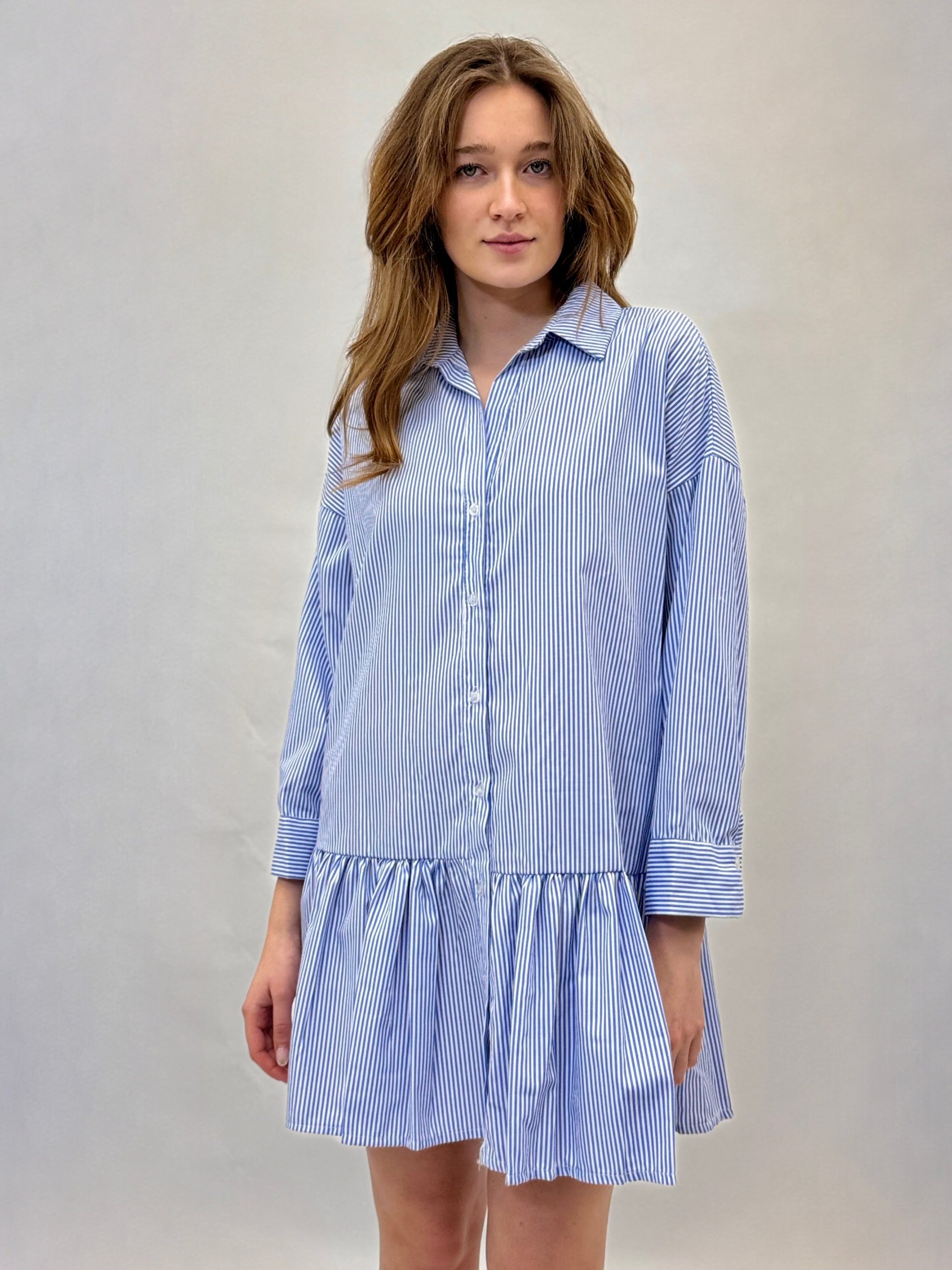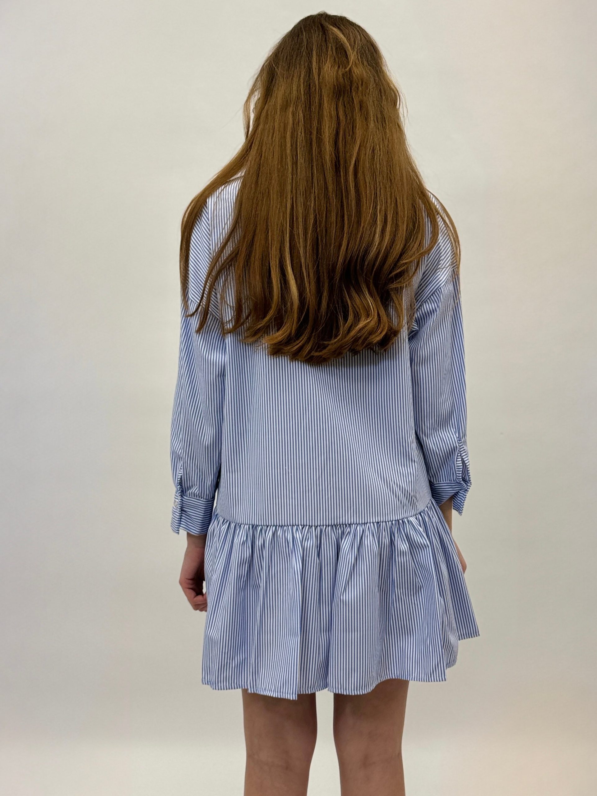 Abito a righe corto. Maniche regolabili. Chiusura bottoni. Gonna con balze.