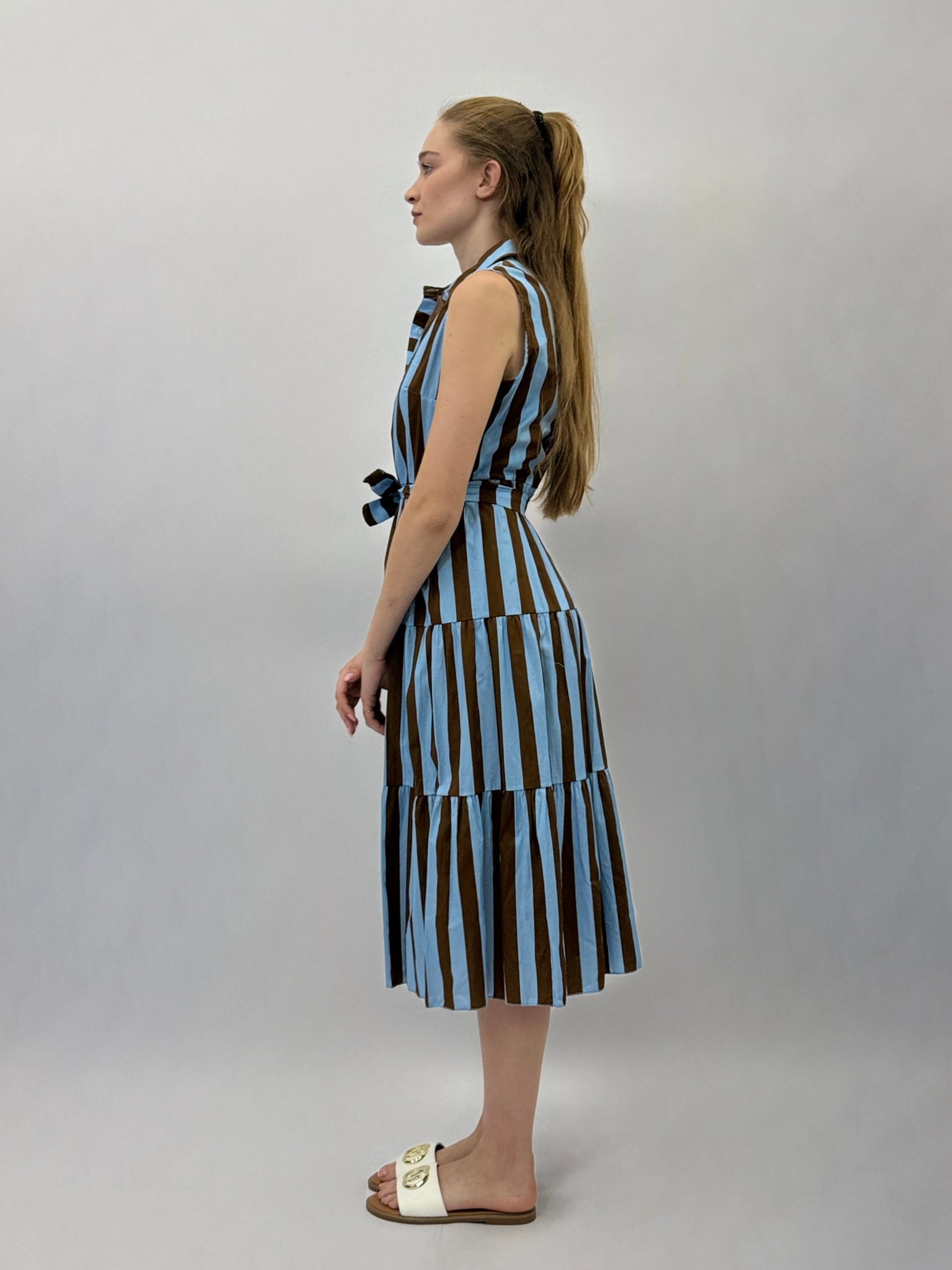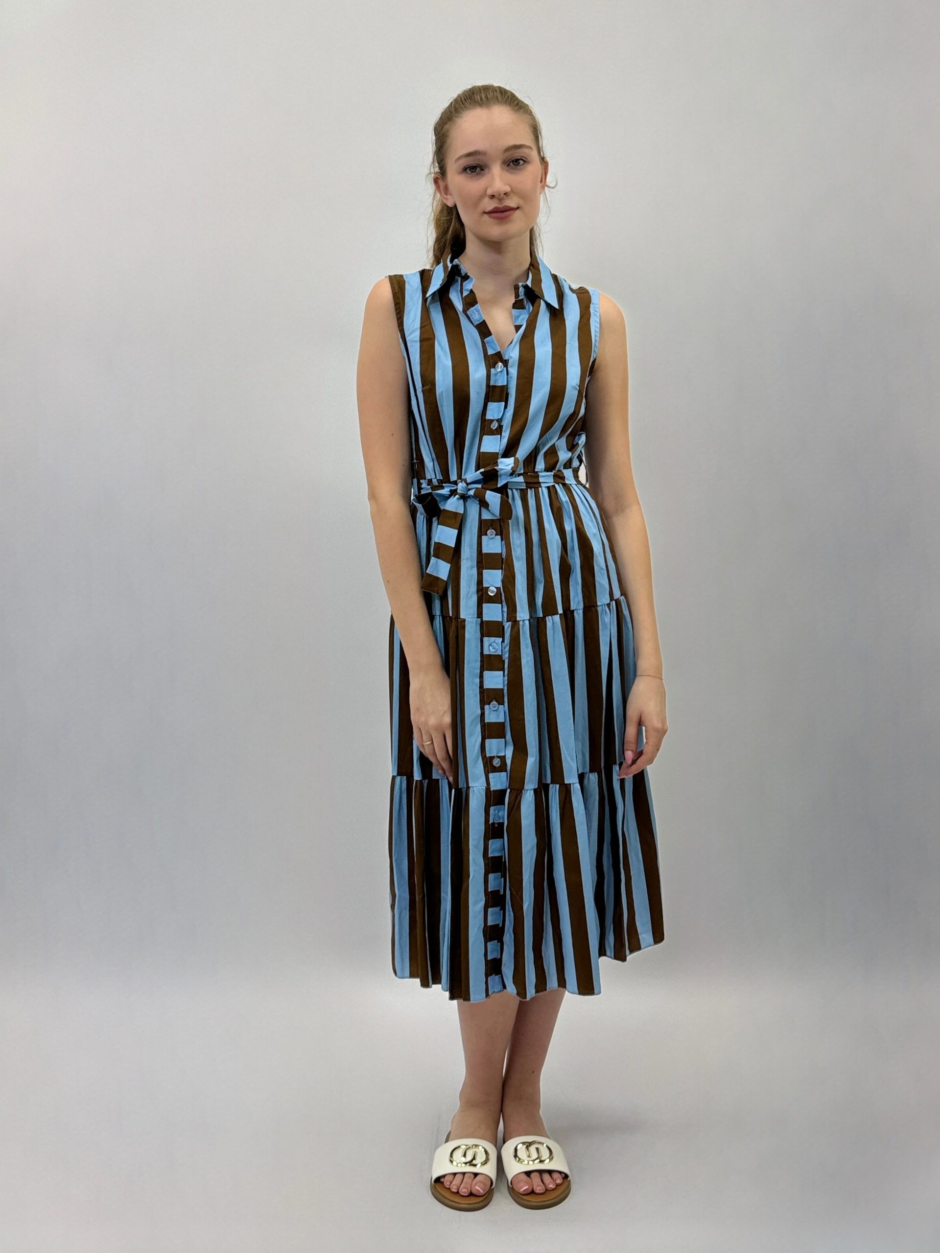 Abito a righe smanicato con cintura