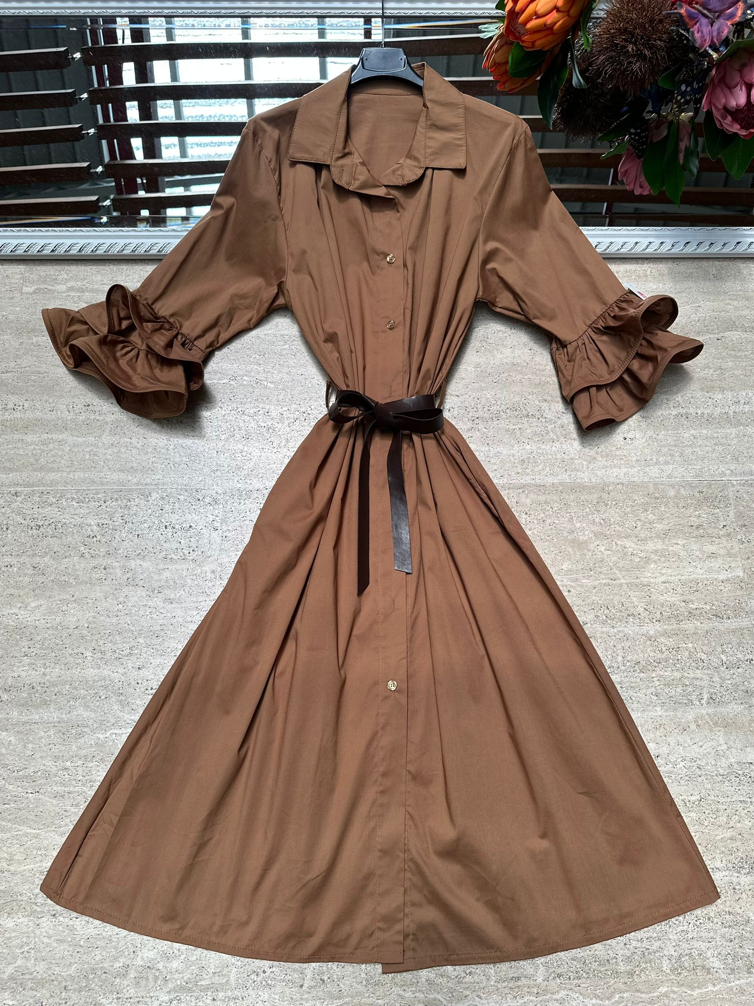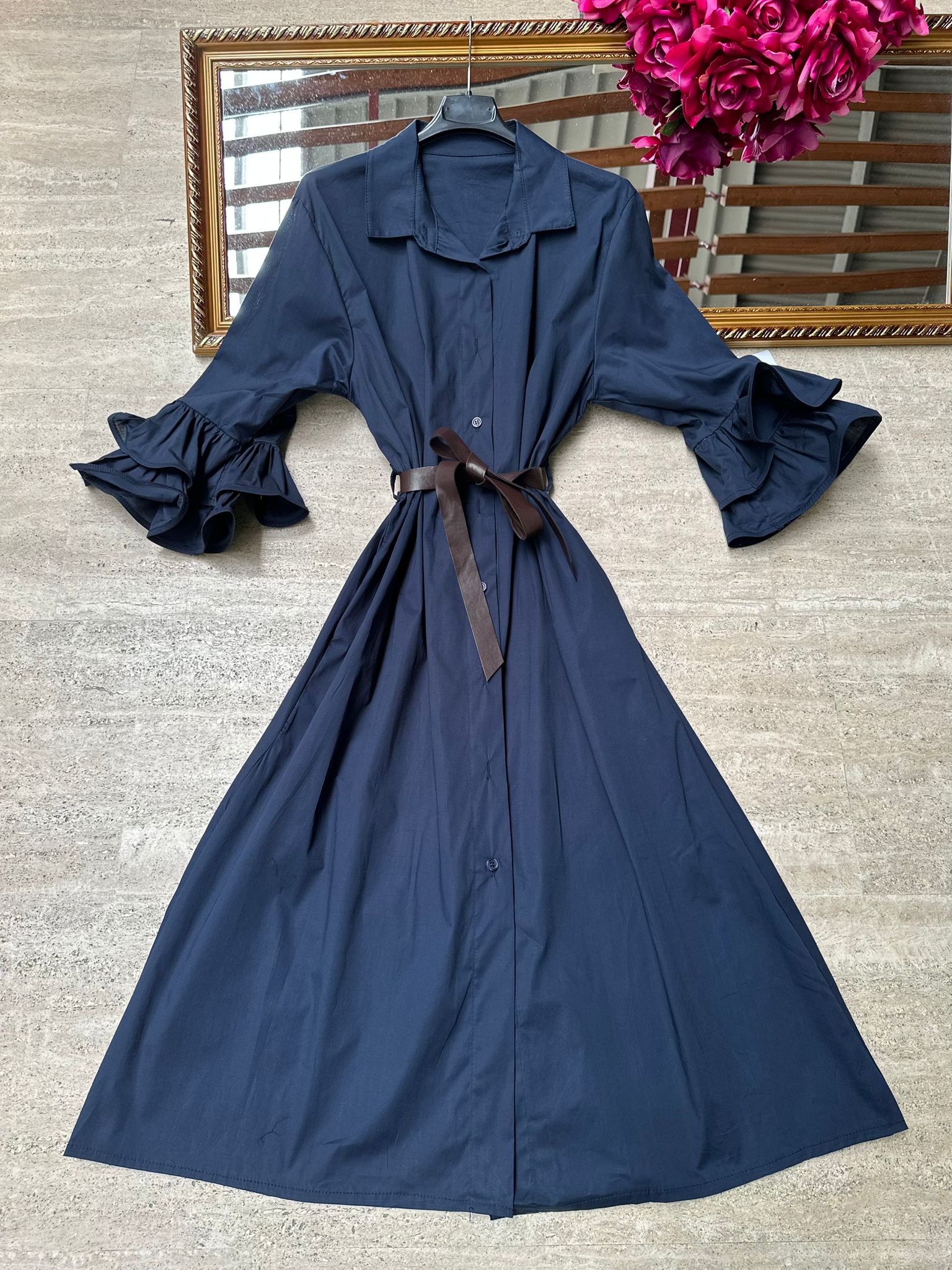 Abito chemisier con maniche rouches.