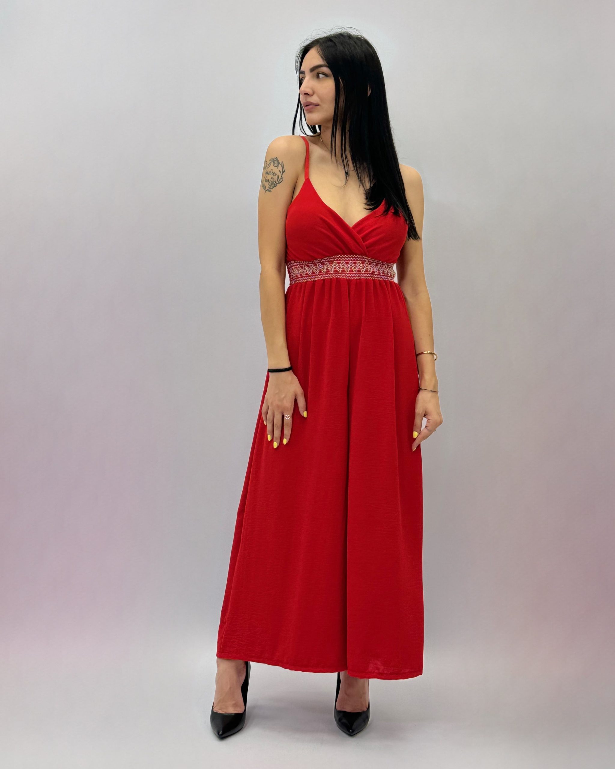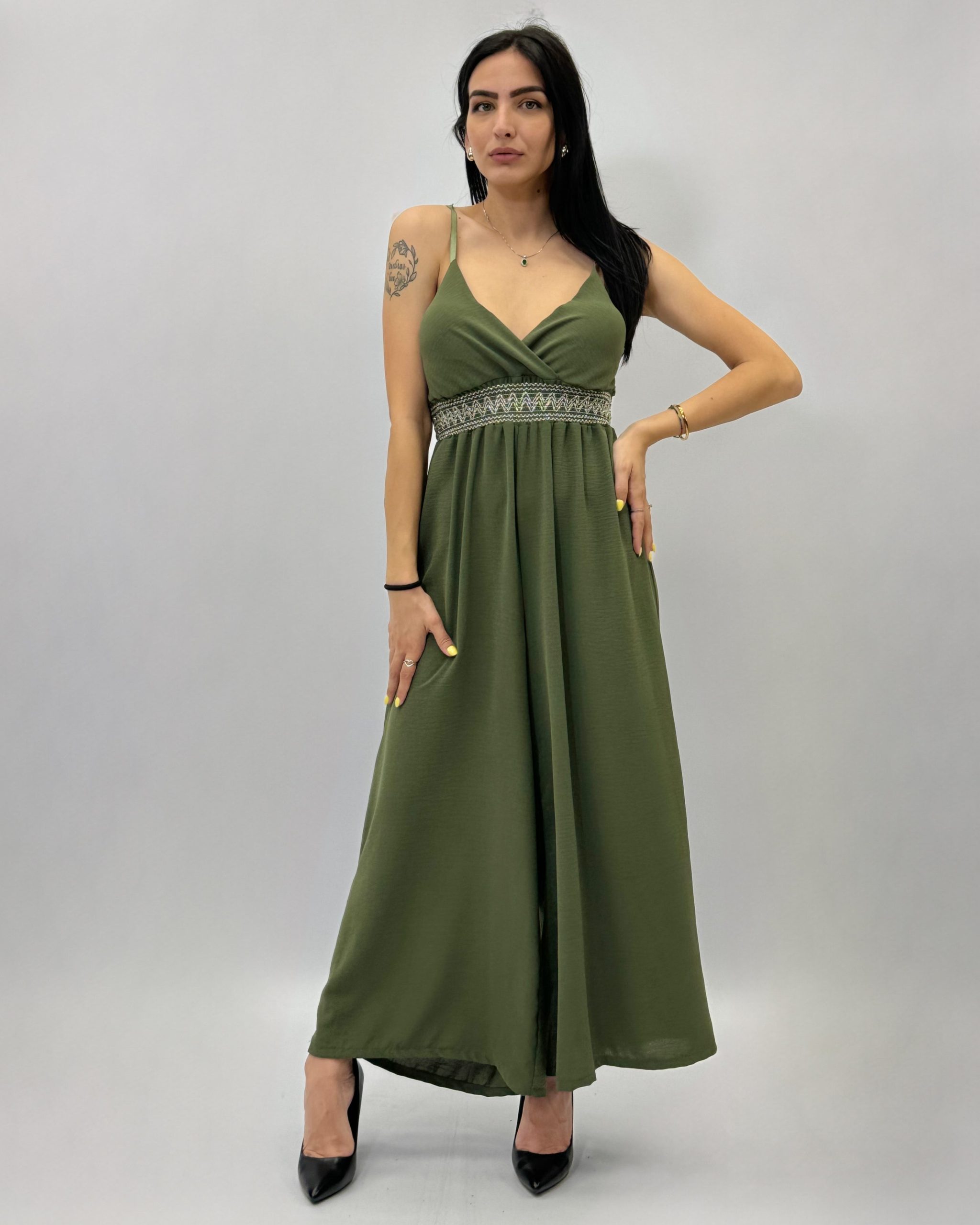 Abito lungo con spalline e dettaglio in vita. Coppe preformate.