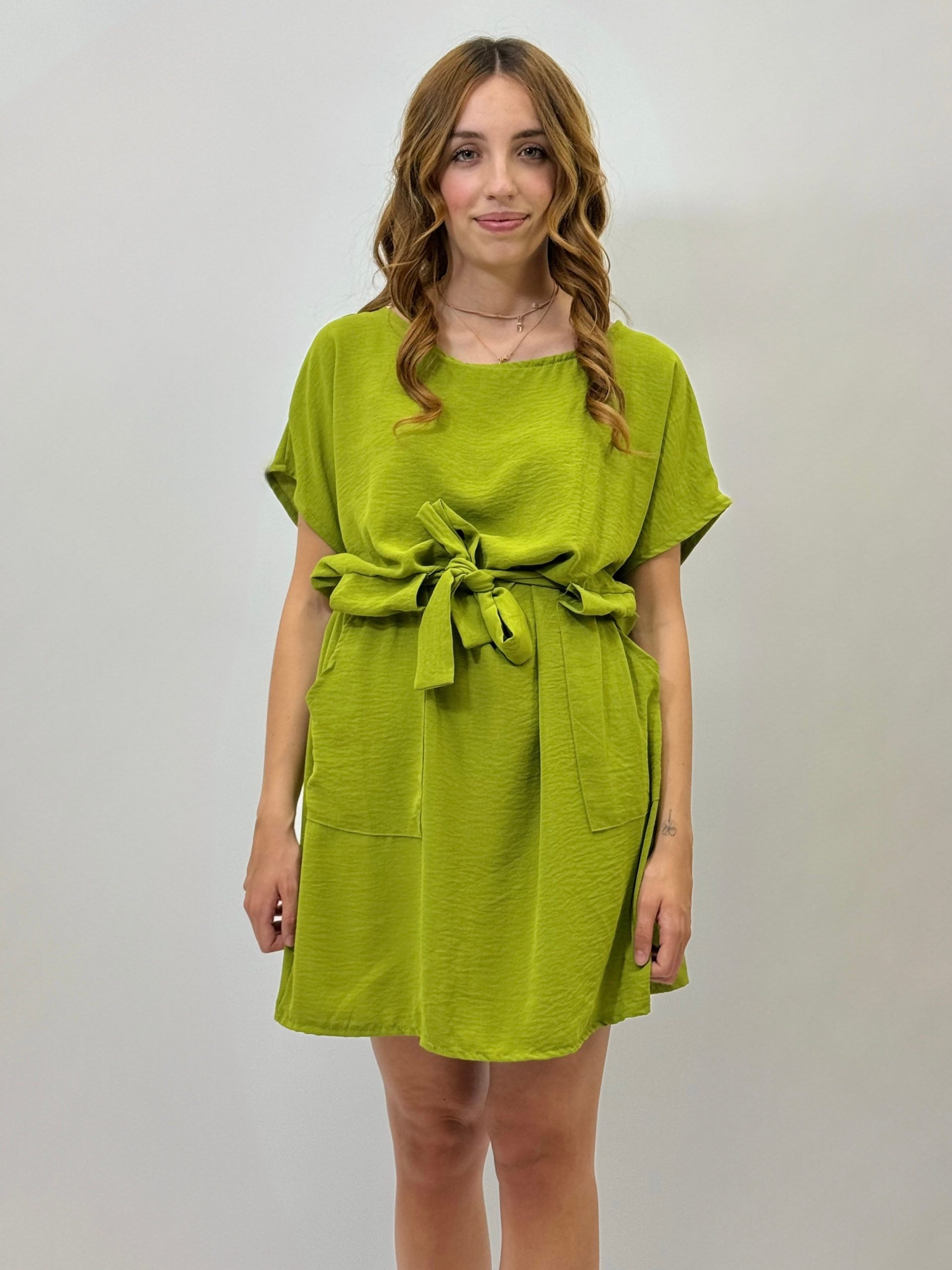 Abito corto tinta unita. Mezze maniche con cintura in vita.