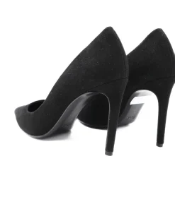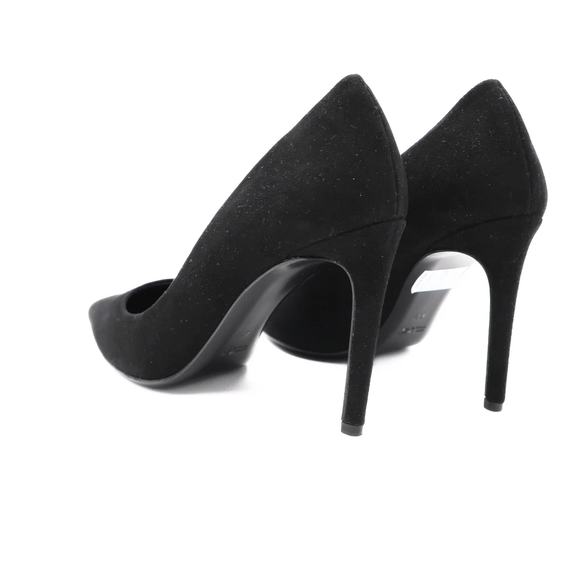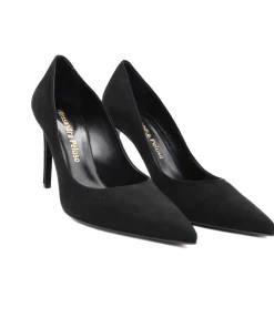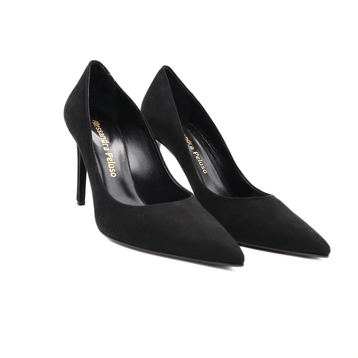 Décolleté di ALESSANDRA PELUSO realizzata in camoscio nero. Interno e sottopiede completamente rivestiti in pelle e suola in cuoio. Realizzata a mano.