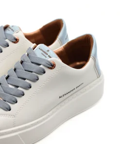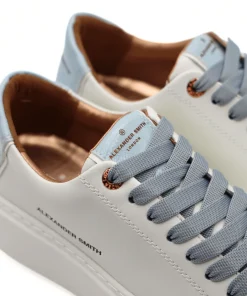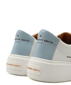 Semplice e minimalista ma allo stesso tempo in grado di racchiudere il carisma dell’intera azienda con pochi semplici dettagli. Questo modello in pelle di ALEXANDER SMITH presenta una rivisitazione del logo che ne sottolinea il carattere e la personalità. Variante bianca con tallone e dettaglio azzurro laccato.