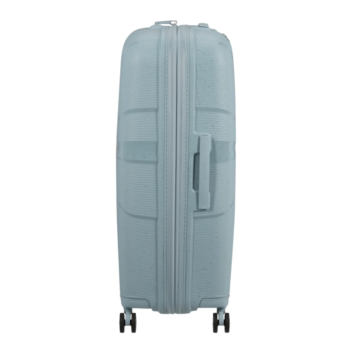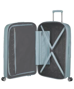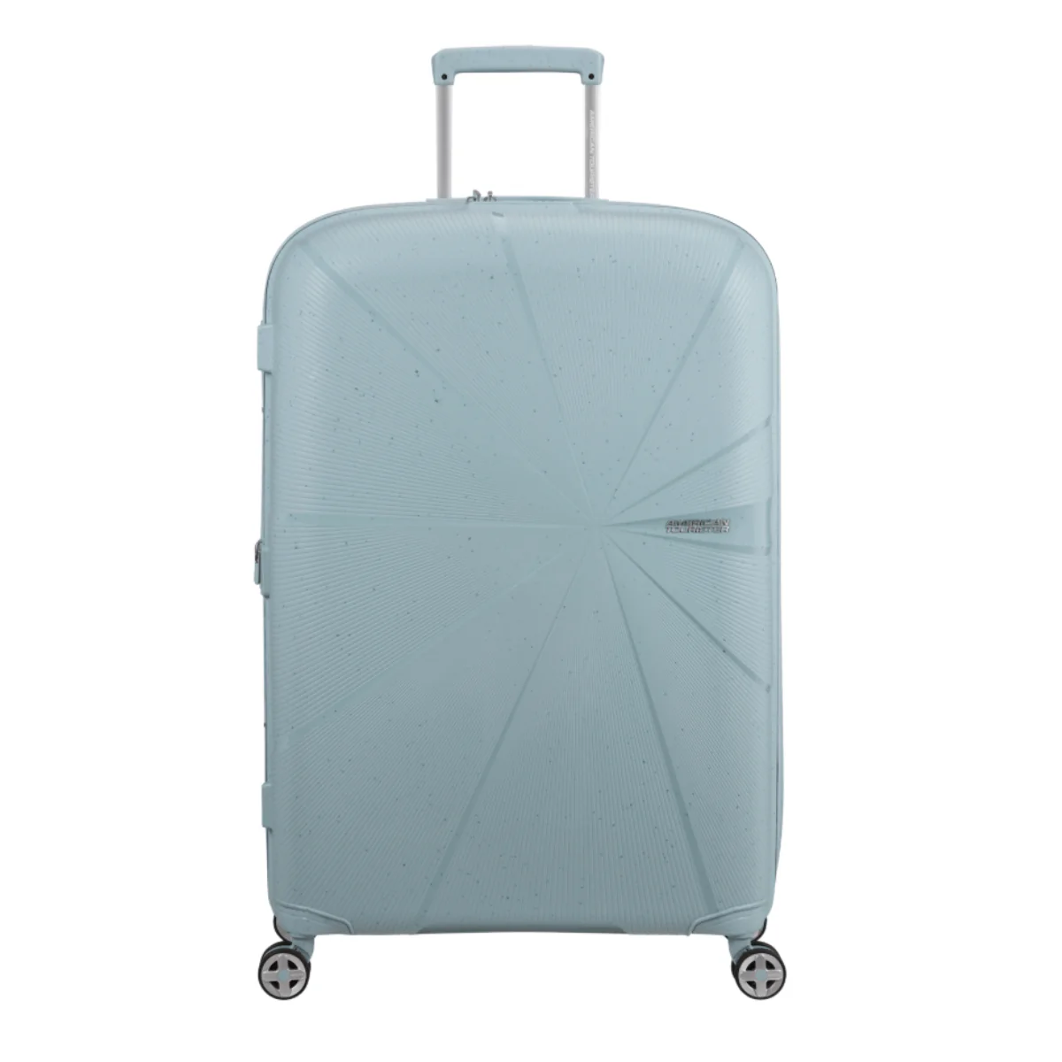 Trolley grande rigido, della linea STARVIBE di AMERICAN TOURISTER dal design unico e avanzate tecnologie. Realizzato in Polypropylene. Vano interno organizzato con divisorio e cinghie elastiche. Chiusura con combinazione e sistema TSA. Quattro ruote bidirezionali . Carrello bitubo. Valigia espandibile.