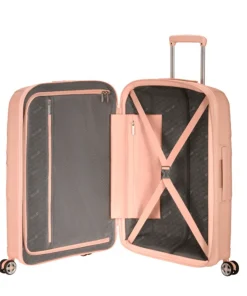 Trolley medio rigido, della linea STARVIBE di AMERICAN TOURISTER dal design unico e avanzate tecnologie color pesca. Realizzato in Polypropylene. Vano interno organizzato con divisorio e cinghie elastiche. Chiusura con combinazione e sistema TSA. Quattro ruote bidirezionali . Carrello bitubo. Valigia espandibile.