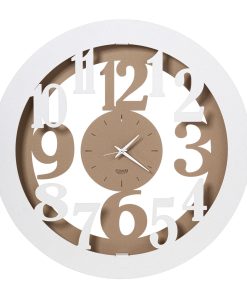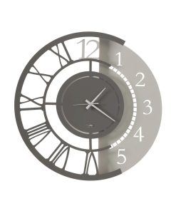 Piccolo orologio da appendere moderno dal duplice design. Presenti sia numeri romani che arabi. Disponibile in tre colori.
