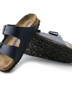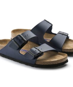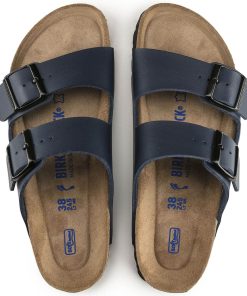 Ciabatta da uomo di BIRKENSTOCK SOFT blu. Tomaia Birko-Flor®, esternamente in pelle, internamente morbido tessuto traspirante. Plantare in sughero macinato e lattice rivestito in pelle scamosciata Soft Foodbed, con morbido cuscinetto di rifinitura sulla base. Suola in EVA marrone. Pianta stretta-narrow fit.