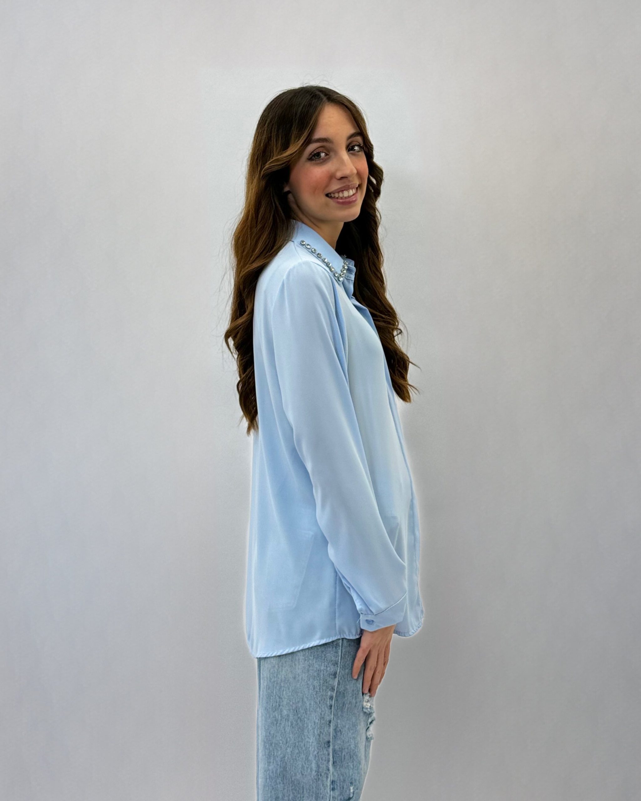 Camicia basic con colletto con dettagli in perline. Veste over.