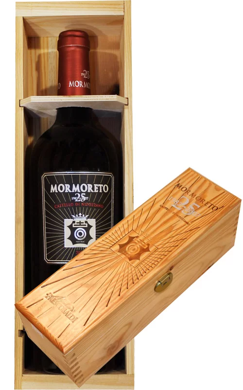 Mormoreto del venticinquennale (annata 2007): prodotto per la prima volta nel 1983, il Mormoreto (etichettato all’epoca sotto il marchio di qualità Predicato di Biturica) può essere considerato il vino bandiera dell’intera produzione della Casa fiorentina. Infatti, i vigneti e le varietà utilizzate per produrlo sono gli stessi di quelli piantati alla metà dell’Ottocento da Vittorio degli Albizi, antenato dei Frescobaldi. Oltre al Cabernet Sauvignon, al Merlot e al Cabernet Franc, l’unica novità è la presenza di una piccola percentuale di Petit Verdot, di più recente impianto. Lasciato maturare in barrique nuove di rovere francese per 24 mesi, a cui segue l’affinamento in bottiglia per altri 6 mesi.