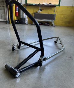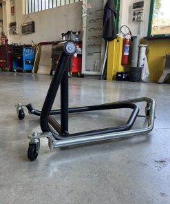 Prima di tutto è Made in Italy ed è di alta qualità artigianale. Il cavalletto permette di sollevare comodamente la ruota posteriore della moto e di manovrarla in modo agevole in spazi anche ristretti. Questo modello è dotato di 3 ruote che permettono che permettono il movimento avanti/indietro e anche il movimento laterale.