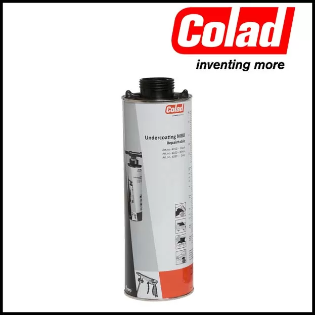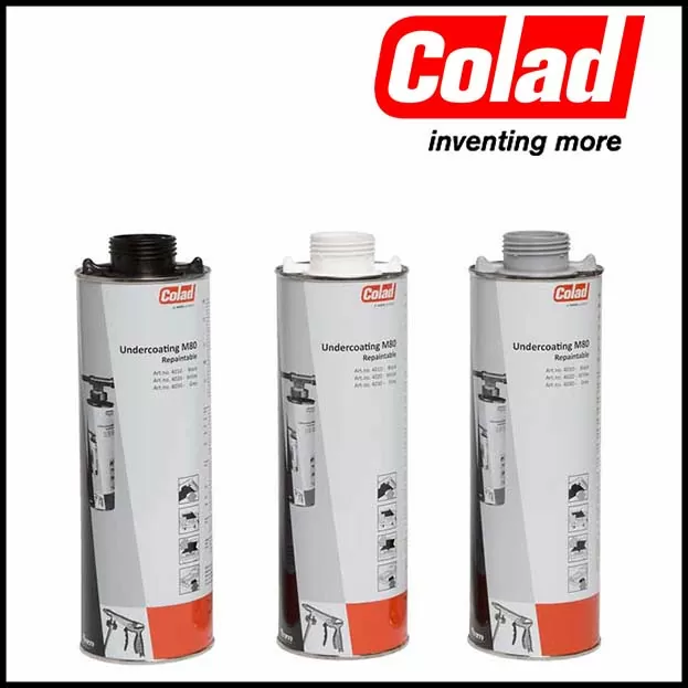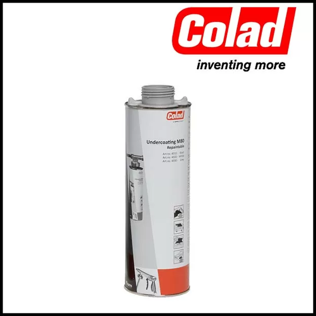 Colad Sottoscocca antirombo M80 ha proprietà anticorrosive e fonoassorbenti. Una volta asciutto, il rivestimento può essere verniciato con i sistemi di verniciatura di uso più comune.