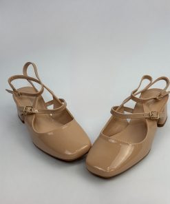 Decollete con punta quadrata e tacco con apertura sul tallone.