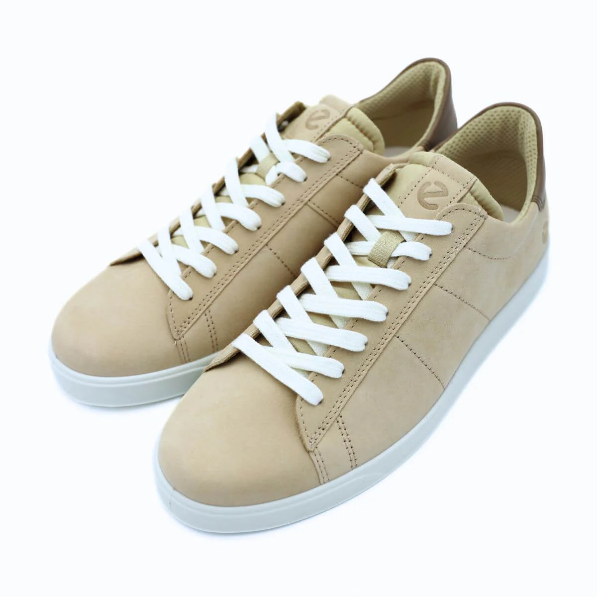 Sneakers da uomo di ECCO, realizzata in nabuk beige e tallone con inserto in camoscio. Interno e sottopiede, estraibile, foderati in tessuto. Suola in gomma. Calzatura molto comoda e morbida.