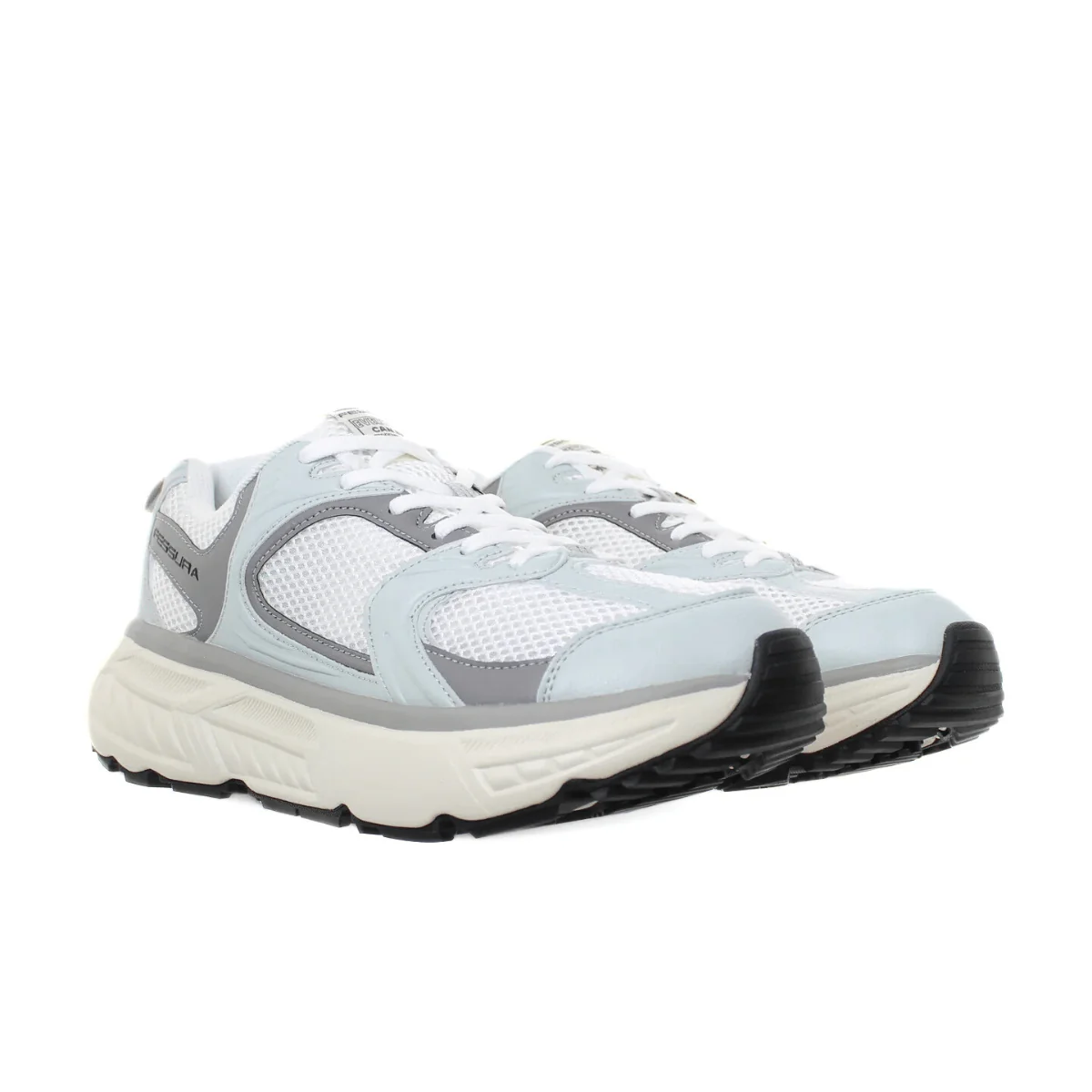 Sneaker da uomo di FESSURA. Realizzata in tessuto tecnico bianco con inserti azzurri, interno foderato e sottopiede estraibile in tessuto. Suola in gomma platform, 5cm, e chiusura con lacci.