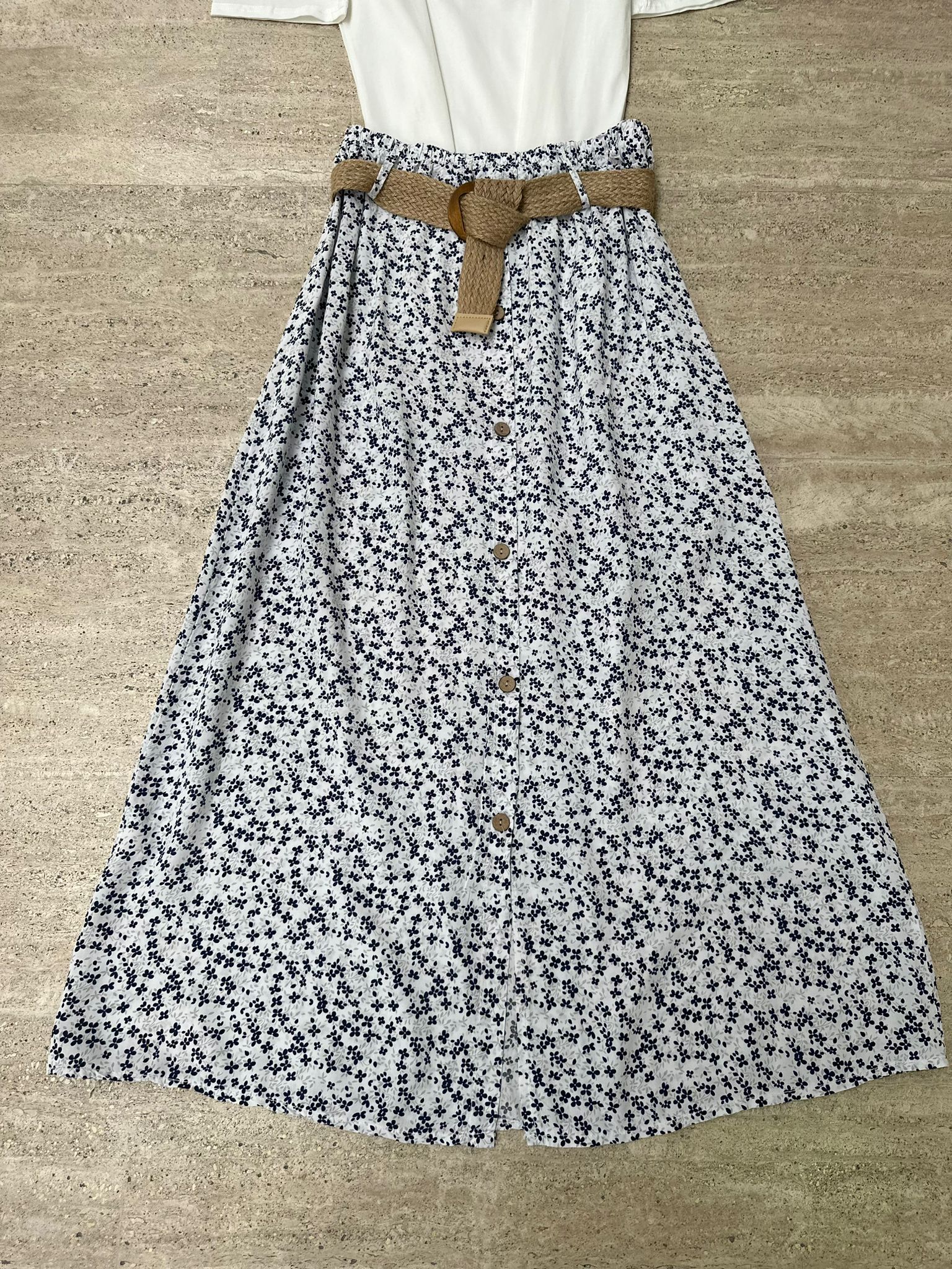 Gonna floreale lunga con cintura. Vita elasticizzata.