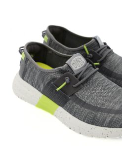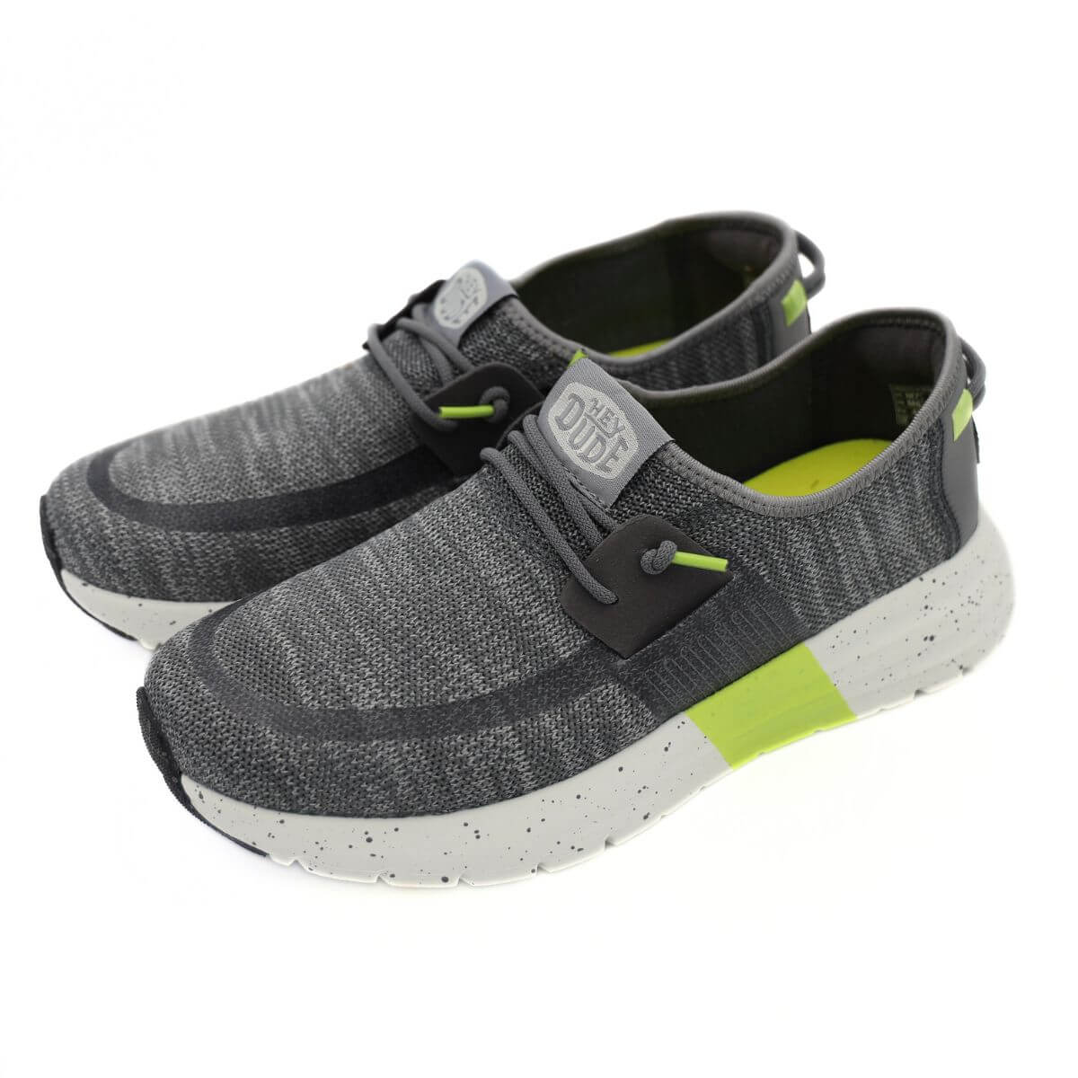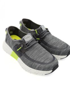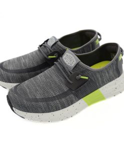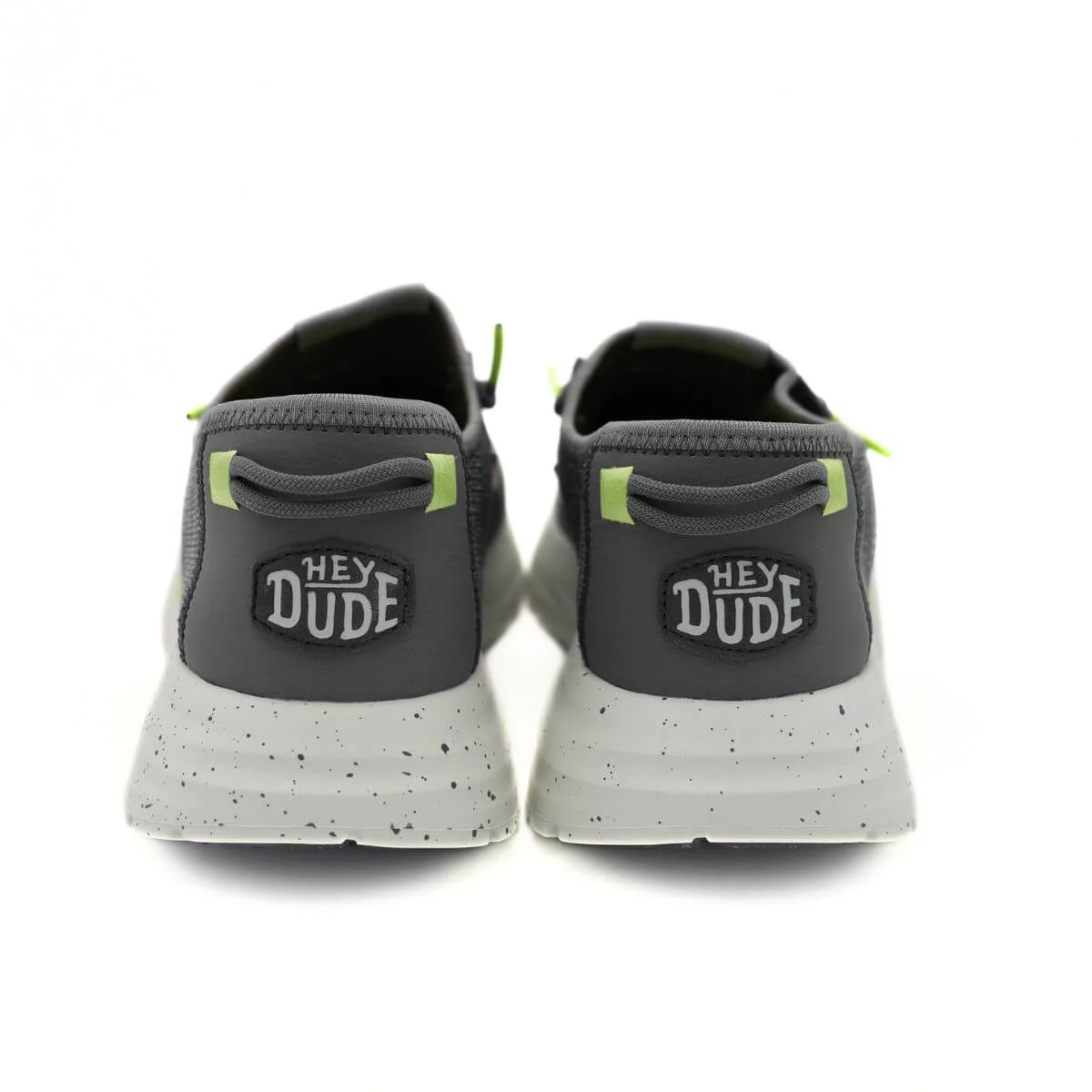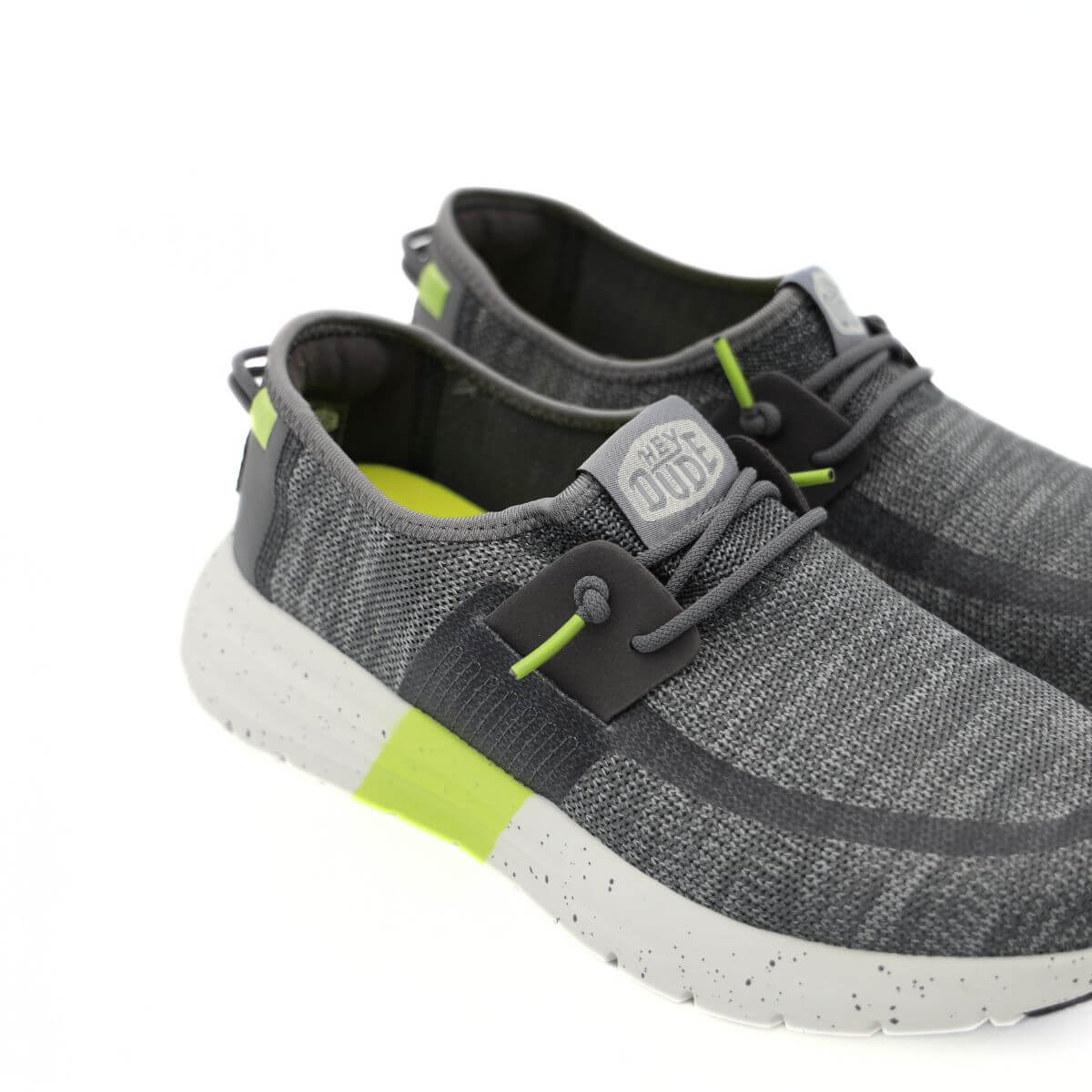 Scarpa sportiva da uomo di HEY DUDE, realiazzata con una tomaia in mesh traspirante color grigio scuro. Calzata easy-on con lacci elastici. Interno in tessuto e plantare estraibile in morbidissima schiuma. Suola in gomma ultra leggera. La linea Sirocco Sport Stripe unisce funzionalità e stile, ideale per qualsiasi occasione.