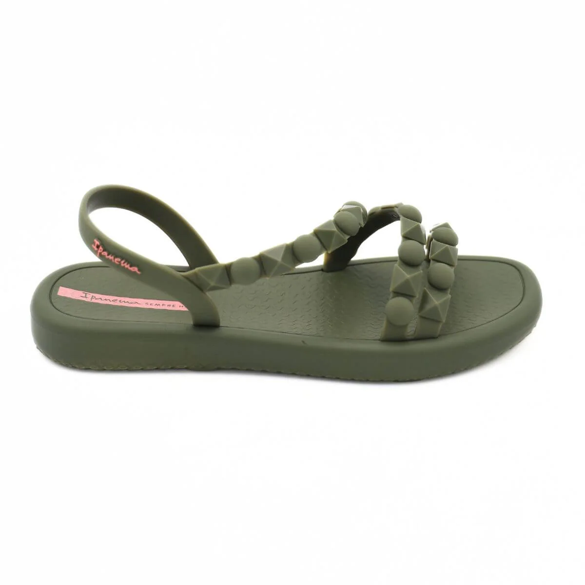 Un sandalo da donna di IPANEMA dal look più sofisticato, con suola rialzata e contorni arrotondati. Questo nuovo sandalo con borchie e sfere è slip-on, realizzato con Flexpand, un materiale riciclabile al 100% e vegano.