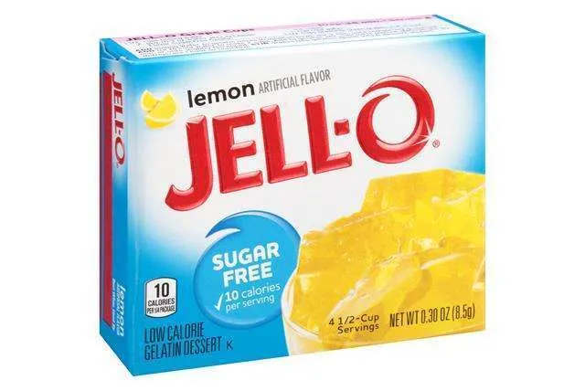 Jell-O Lemon Gelatina Sugar Free preparato per gelatina dalla consistenza perfetta al gusto di limone. Facilissima da fare con la sola aggiunta di acqua! Senza zucchero! Divertiti con i tuoi amici con questo delizioso preparato per gelatina senza zucchero!