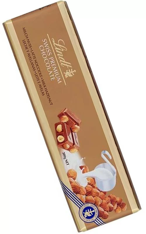 Lindt Swiss Premium Chocolate: barra di cioccolato al latte e nocciole da 300 gr. Il morbido cioccolato al latte della migliore tradizione con croccanti nocciole intere accuratamente tostate, per un’intensa sorpresa gustativa.