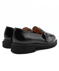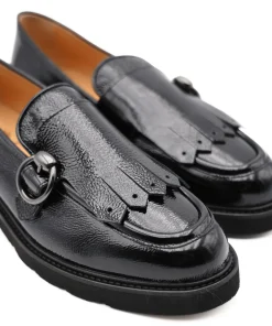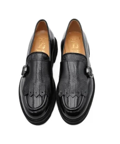Mocassino donna di LUCA GROSSI. Realizzato in pelle naplak color nero, con fibbia argento e frange sul puntale, Internamente foderato, morbido soffietto nel sottopiede rifinito in pelle. Suola in gomma. Calzatura ideata, disegnata e realizzata in Italia, prodotto made in Italy.