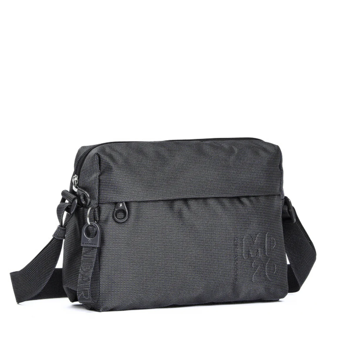 Borsa a tracolla media di MANDARINA DUCK con tasca frontale in tessuto. Doppia portabilità, tasche smart frontali e interne, dettagli personalizzati e tracolla regolabile in jacquard.