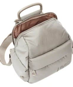 Zaino di MANDARINA DUCK della linea MD20 Balloon. Realizzata in nylon grigio imbottito, leggero e morbido con tasca frontale. Interno unico comparto con tasche accessorie. Logo in Lettering stampato tono su tono. Tracolla in nastro jacquard, regolabile con anello scorrevole.