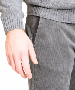 Pantaloni modello chinos da uomo di MARKUP realizzati in cotone grigio a costine. Presentano una chiusura con bottone e zip e tasche frontali e posteriori. Vestibilità regolare.
