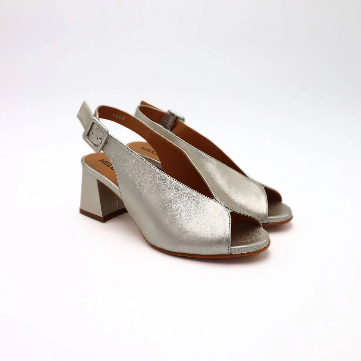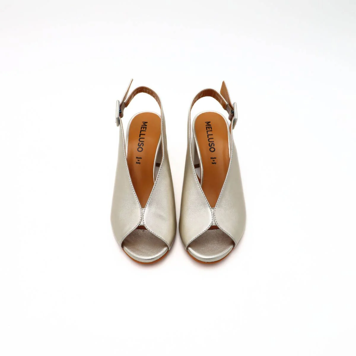Sandalo alto di MELLUSO. Scarpe realizzate in pelle laminata argento con cinturino regolabile alla caviglia. Sono dotate di un comodo interno in morbida pelle. Un design sofisticato che le rende uniche con una suola in cuoio. Tacco laminato argento, altezza: 6cm