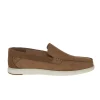 Mocassino donna stile college in pelle bottalata grigio con riflessi argento, catena sulla mascherina, di MOBILS by MEPHITO. Internamente foderato in pelle, morbido plantarino estraibile. Suola in gomma leggera alta 2 cm, tacco altezza 5 cm. Chiusura rapida e confortevole grazie agli elastici sulla chiusura del collo.