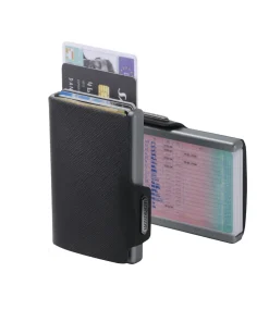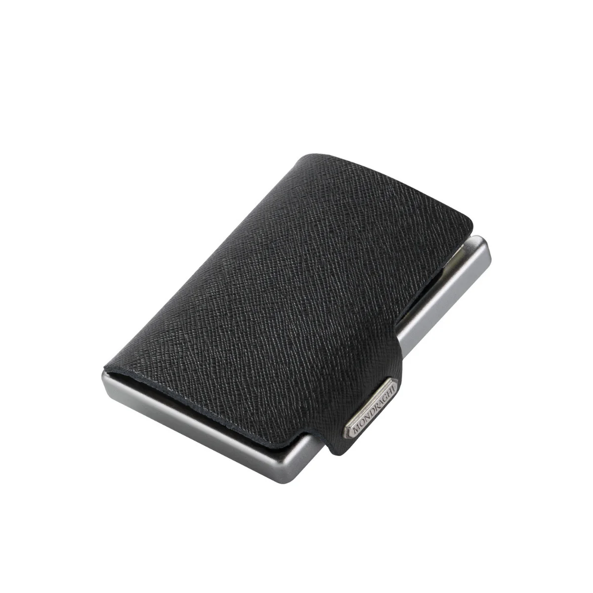 Portafoglio e porta tessere di MONDRAGHI realizzato in pelle saffiano e scocca in alluminio. Pratico sistema per contenere fino a 9 tessere, angoli arrotondati per non rovinare i tessuti, posizione delle carte e delle tessere idonee a proteggere la banda magnetica delle carte. Protezione RFID e NFC.
