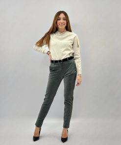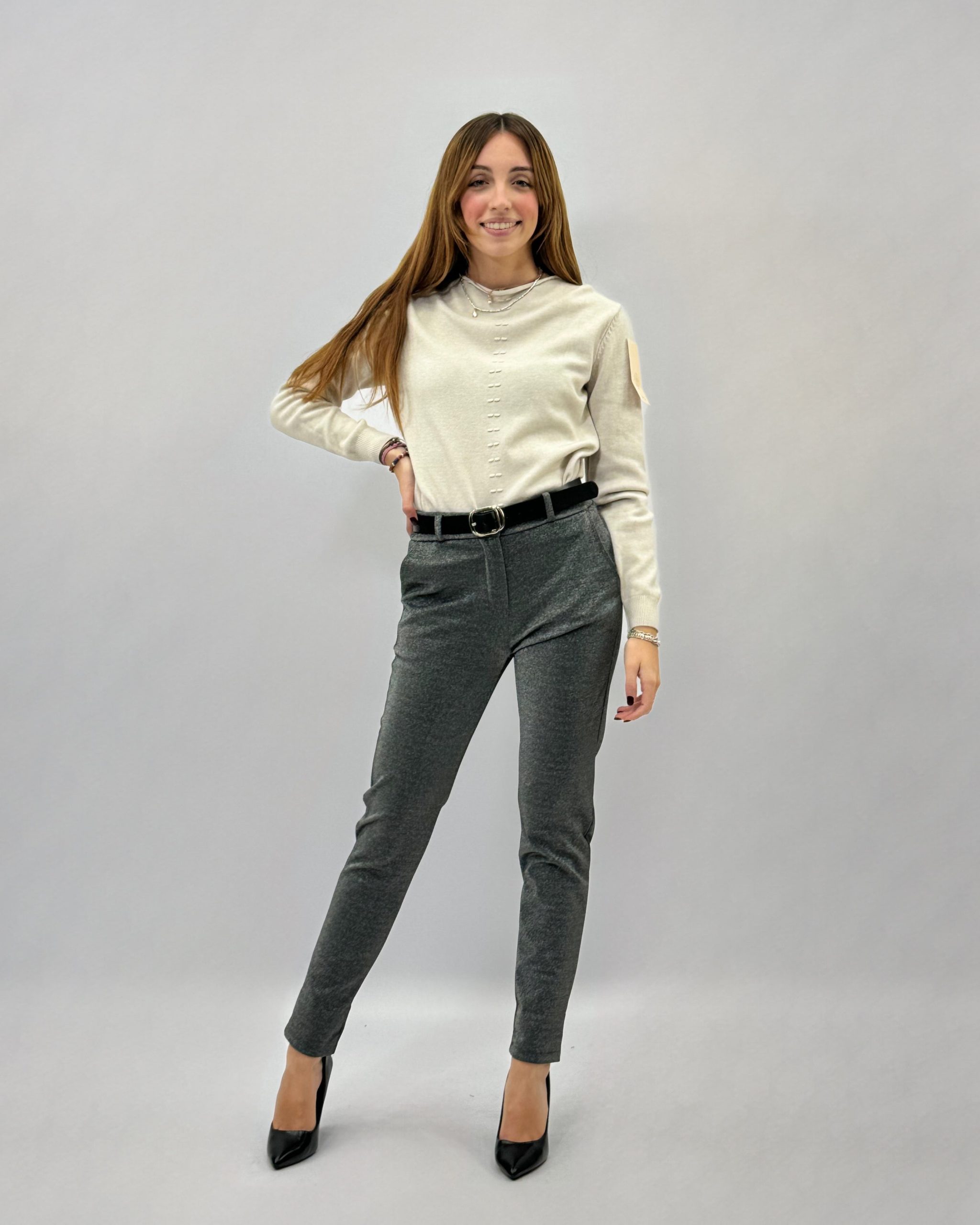 Pantaloni lunghi lurex con cintura. Elasticizzati. Tasche laterali.