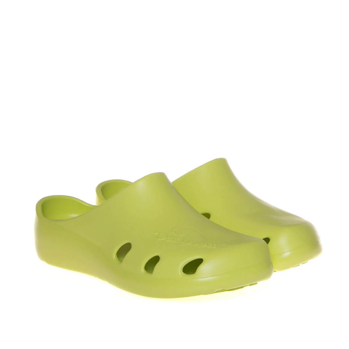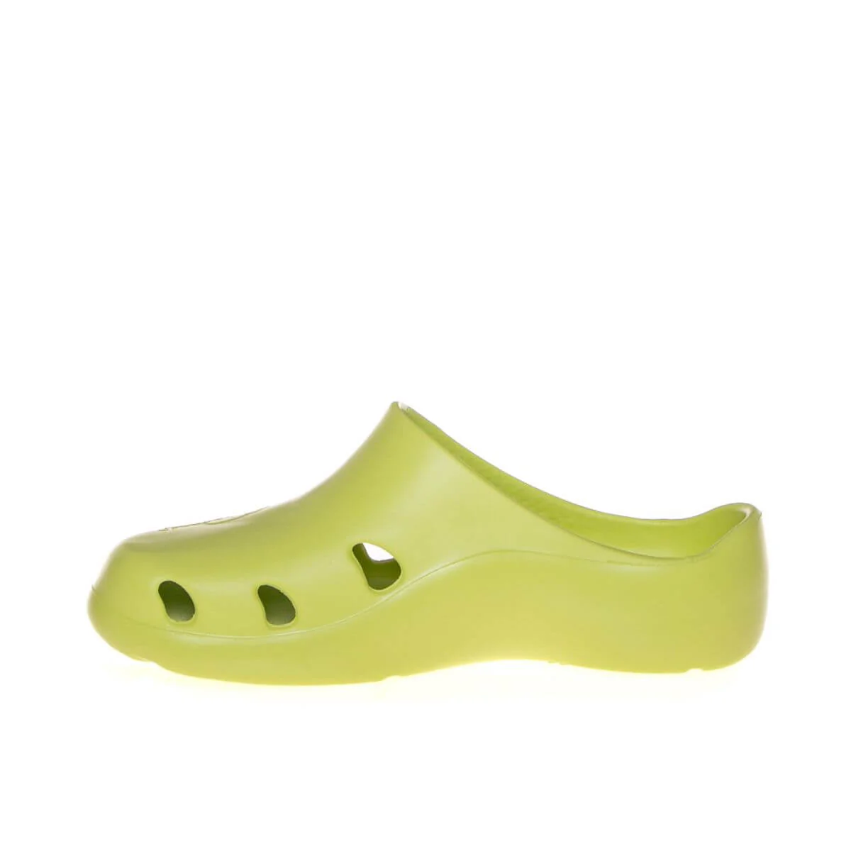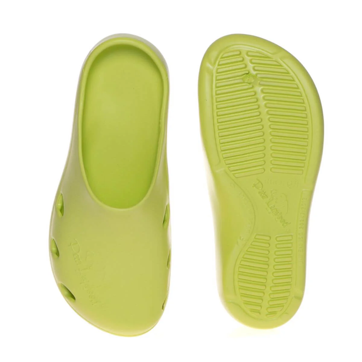 Comoda ciabatta da donna di PETER LEGWOOD. Realizzata in eva Levirex®color verde acido, materiale antibatterico e termo formabile. Suola antiscivolo, altezza 4 cm.