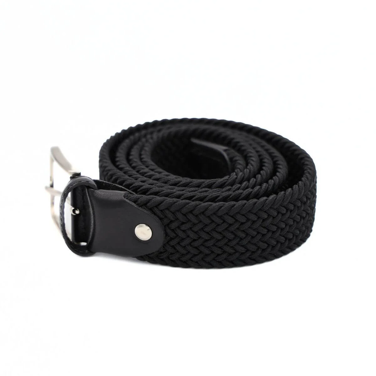 Cintura da uomo di PRATENICE in tessuto elastico intrecciato nero.
