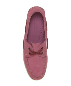 Classico e iconico mocassino barca donna di SEBAGO. Tomaia realizzata in pelle rovesciata “camoscio” nella colorazione rosa, foderato in pelle; internamente plantarino costruito, con goccia sul falso, non estraibile. Caratteristica stringa in pelle a perimetro del collarino, atta alla regolazione dell’aderenza al piede. Suola in gomma con disegno sul battistrada antiscivolo, tacco 2 cm, internamente appoggio a 2,5 cm.