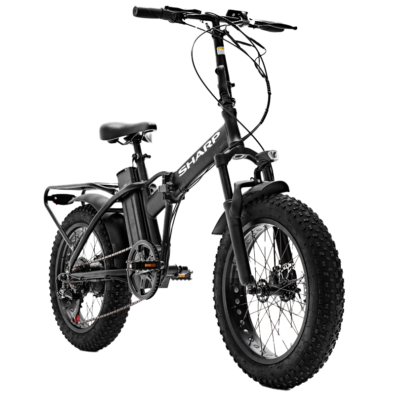 SHARP BASEL (BK-FM02E-B) FOLDABLE FAT E-BIKE (BLACK) – BICICLETTA ELETTRICA – RUOTE 20″”X4″” – MOTORE 250W 36V – BATTERIA 36V 13AH CERTIFICATA – TELAIO IN ALLUMINIO – AUTONOMIA FINO AD 50KM – FORCELLA AMMORTIZZATA