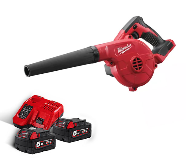 Il Soffiatore Milwakee M18 BBL-0 in KIT è fornito con 02 batterie M18 da 5.0 Ampere cod. 4932430483 e con 01 Caricabatterie cod. 4932352959 .