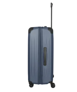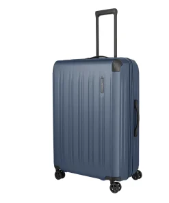 Trolley grande DYNAMIC di TRAVELITE, realizzato in ABS, robusto e resistente con superficie antigraffio, angoli rinforzati per una maggiore protezione. Doppio divisorio con fettuccia ferma abiti attaccata al fondo. Quattro ruote doppie e serratura a combinazione TSA incassata. Manico telescopico robusto e bloccabile. Manico sul fondo. Valigia espandibile.