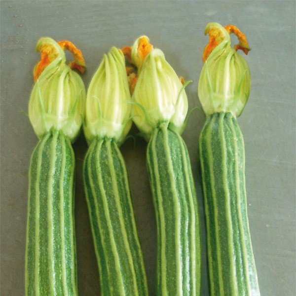 Le zucchine seminate vengono vendute in contenitori da 4 piante o in cassette da 40 piante (10 vaschette x 4 piante).